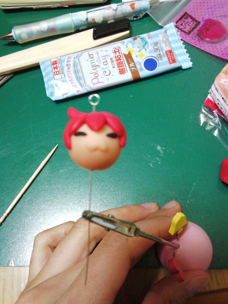顔作成後すぐに髪の毛を付けるとうっかり顔を指等で陥没させかねないので