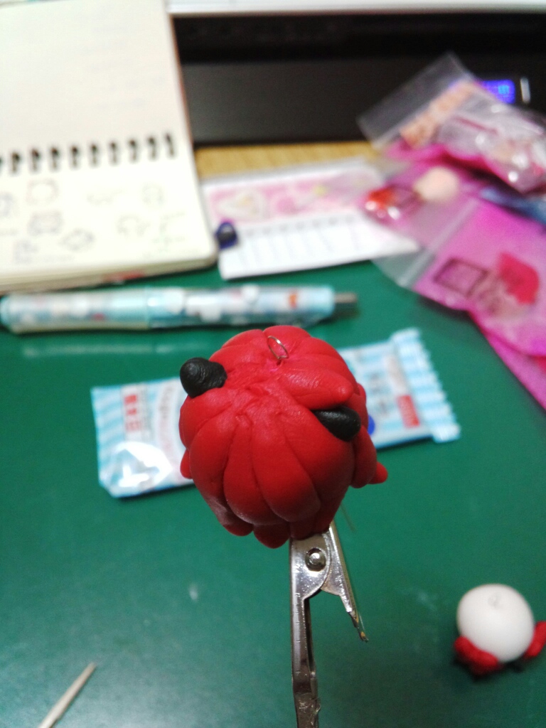 ちなみに手足はもげないようにビーズワイヤーを切って粘土で包み、本体に挿してます。
