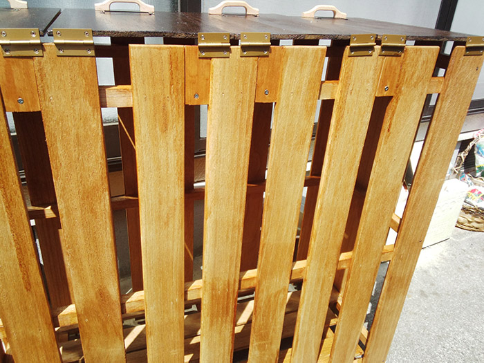先日、完成したゴミ箱を相方宅に設置・最終調整しました。